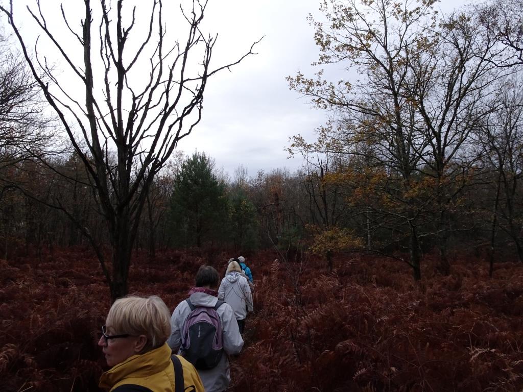 Chemin des Cent Marches puis, à droite, le sentier monte ... on admire la bruyère encore en fleurs ... puis redescend jusqu'au chemin de Rumont.