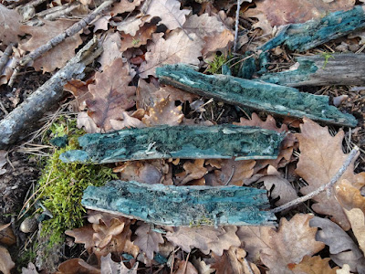 Cette jolie couleur turquoise est due à un champignon, le pézize devenant vert-de-gris (c'est son nom).